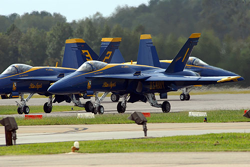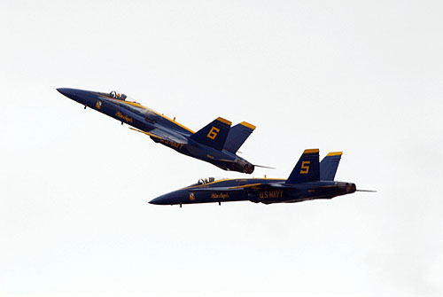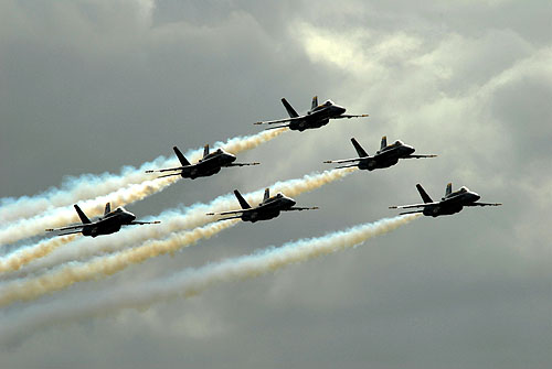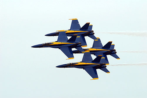 Az Egyesült Államok haditengerészetének (US Navy) hivatalos bemutató-köteléke, az F/A-18 Hornet harci gépekkel repülő Blue Angels formáció is fellépett az 50-ik, az Oceana támaszponton megrendezett repülőnapon. A flotta fotósai által megörökített képekből most mi is közzé teszünk néhányat, melyek a kék-sárga színeket viselő „Lódarazsak” kötelék és szólórepüléseit örökítik meg.