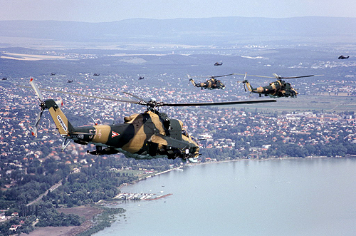 A fotózás a pillanat művészete. Ez a kép is egy megismételhetetlen pillanatot örökít meg. A pillanatot, amikor a Bakony Harcihelikopter Ezred helikopter köteléke a búcsúrepülésre készült a Balaton felett. A 2004 júliusában készült képek fő érdekessége, hogy ennyi helikopter azóta sem volt egy kötelékben hazánk légterében. Az utolsó kiképzési repülésen tizenhárom Mi-24 Hind harci helikopter és három Mi-17 Hip szállító helikopter tartózkodott egyszerre a levegőbe.