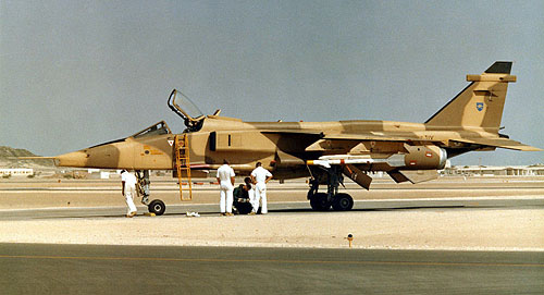 Sivatagi festéssel ellátott Jaguar az egyik ománi támaszponton. Jól bevált konstrukció, mely azonban már kiszolgálta az idejét