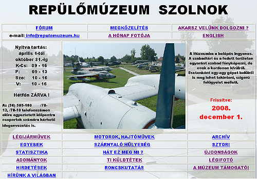 Talán nem mellékes az sem, hogy elégedetlen vagyok a honlap jelenlegi küllemével, jó lenne rajta javítani. Ennek a megint csak az idő és nem kevésbé a saját esztétikai kreativitásom szab korlátot.Adós vagyok egy linktárral is, ahol leróhatnám tartozásomat azon sokak felé akik felvették a www.repulomuzeum.hu -t a sajátjukra.