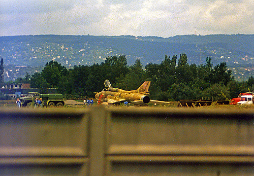 1996-ban aztán megkezdődött a nagy felkészülés. Ekkor már javában a Pestvidéki Gépgyárban voltam gyakorlatokon, ahol is ekkor voltak nagyjavításon a Szu-22-esek, így pesti lakosként és mezei szakközepesként is volt alkalmam vadászgépeket nézegetni, hiszen míg a többiek rohantak haza, én inkább a hajtómüvező helyet választottam délutáni programnak. Miután a nyári gyakorlatunk is lejárt, el kellett hagyni a repteret, oda többet nem mehettem vissza, de a kerítéséhez még igen! Ide már a 200mm-es Pentacon objektívemmel és a Practika fényképezőmmel vonultam fel, hogy megörökítsem a 09-es UTI Szuhoj repülését.