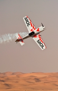 Veres Zoltán a sivatag felett az új MXS repülőgépével