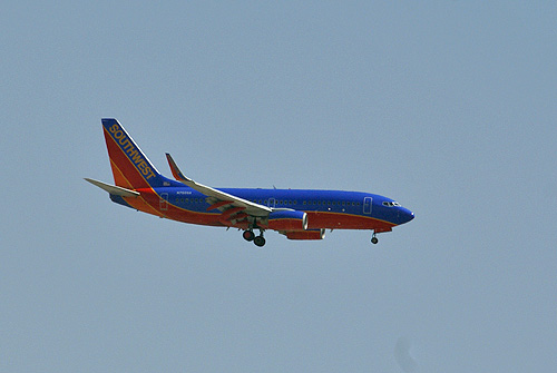 A forgalom harmincöt százalékával büszkélkedő Southwest Airlines gépei a leggyakoribb vendégek Las Vegas légikikötőjében. A színpompás festésü utasszállítókat a nap szinte minden szakában megörökíthetjük akár a városközpont szállodái előtt állva is. A felvétel a Strip-nek nevezett főutcán, a Palazzo Hotel előtt készült