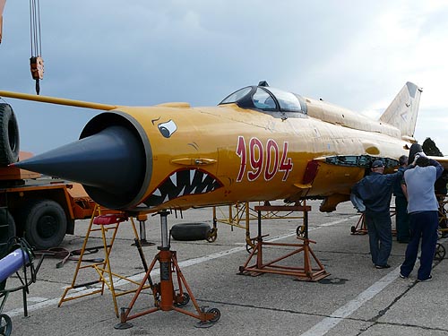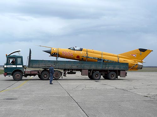 Az elmúlt héten két repülőgéppel gazdagodott a Múzeum gépparkja. Ráadásul két azonos típusú, sőt, alváltozatú géppel, jelesül MiG-21biszAP-vel. Mindkettőt Kecskeméten, a Légijármű Javító Üzemben festették újra a 2008 augusztusi repülőnap alkalmából, ahol természetesen már csak a statikus kiállítás fényét emelhették. Az egyik a különleges festésű, egykori repülőnap-sztár az 1904 oldalszámú Cápeti, március 30-án érkezett a Helikopterbázisra, a másik szintén szépen újrafestett 5721-est pedig április 2-án sikerült a múzeumi, remélhetőleg végső helyére vontatni.