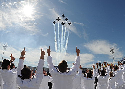 A világ egyik leghíresebb katonai bemutatókötelékét, az amerikai haditengerészet legendás Blue Angels (Kék Angyalok) nevű formációját sem kíméli a globális pénzügyi és gazdasági válság. A legújabb hírek szerint a népszerű csapat pilótái ezentúl keddenként nem gyakorolhatnak, mivel a heti egy repülés elmaradása is komoly megtakarítást eredményezhet. A díszfestésű F/A-18 Hornet gépek ezentúl csak szerdától vasárnapig végezhetnek repülési gyakorlatokat és bemutatókat. A haditengerészet ugyanakkor biztosított mindenkit arról, hogy 2009-ben egyetlen bemutató sem fog elmaradni.