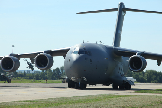 Hétfőn délelőtt, pontban 10 órakor az MH Pápa Bázisrepülőtéren a Magyar Honvédség díszzászlóaljának egyik százada katonai tiszteletadással fogadta Bajnai Gordont, a Magyar Köztársaság miniszterelnökét, Claudio Bissugnierot, a NATO főtitkár-helyettesét, Szekeres Imre honvédelmi minisztert és Tömböl László mérnök vezérezredest, a HM Honvéd Vezérkar főnökét. Az első, magyar felségjelet viselő C–17-es szállítógép ezt követően gurult be a repülőtér betonjára.
