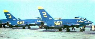A tervek szerint 1953. nyarán a köteléket az új, nyilazott szárnyú F9F-6 Cougar típusú repülőgépekkel kívánták felszerelni. Augusztus 4-én a csapat a Grumman Bethpage-i gyárából szállt fel, hogy átrepüljék új gépeiket Corpus Christibe. A repülés során a kötelék parancsnoka Hawkins sorhajóhadnagy meghibásodást észlelt és a gép elhagyására kényszerült. Így ő lett az első haditengerészeti pilóta, aki sikeres katapultálást hajtott végre hangsebesség felett. Ezt követően a többi gépet visszaküldték a gyárba, hogy néhány módosításon essenek át, de a típus soha nem került a Blue Angels állományába.