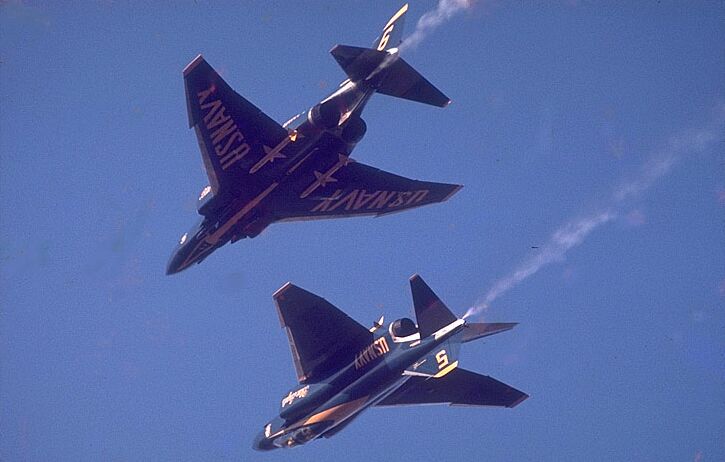 1966-ban ünnepelte megalakulásának 20. évfordulóját a Blue Angels. Szeptember 1-3. között immár hatodik alkalommal szerepelt a csapat a Torontói Nemzetközi Légishown. A második nap programját egy sajnálatos esemény miatt meg kellett szakítani. Dick Oliver sorhajóhadnagy a kötelék bemutatója során, az 5-ös számú géppel katasztrófát szenvedett. A következő nap azonban a csapat már ismét a levegőbe emelkedett, hogy végrehajtsa bemutatóját.