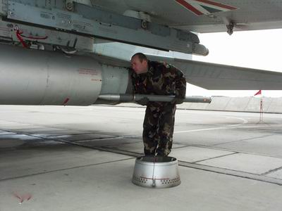 A sikeresen végrehajtott rakétás lövészet után másnap a gépágyú lövészet következett. A repülőgép felkészítése a gépágyú tárazásával kezdődik. Az elkülönített zónában 10-15 lőszerrel fegyverzik fel a gépet. A technikai felkészítés, (üzemanyag-, levegőtöltés stb.) azután következik, majd felszállás és a kitüzött feladat végrehajtása.