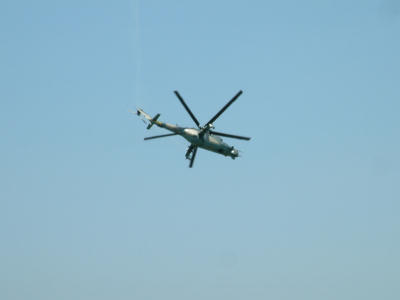 A forgószárnyas gépek programját a Bakony Harcihelikopter Ezred Mi-24 Hind bemutatója zárta.