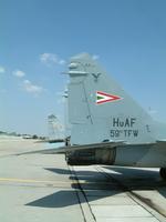 Makettezőknek szeretnénk kedveskedni a következő fényképekkel. 2003.július 16-án a kecskeméti repülőnapot beharangozó sajtónapon alkalmunk nyílt a már véglegesnek mondható MiG-29-esek új festését megcsodálni. A legelső sajtóhírekben megjelent fényképektől alapos eltérések találhatóak, ezért hát közreadjuk az új képeket.