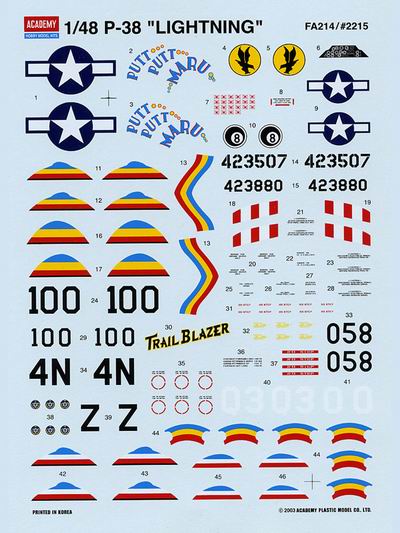 Az Academy cég két újdonságot ajánl a makettezőknek. 35-ös méretarányban AH-60L DAP Black Hawkot (2217). A dobozban minden müanyag alkatrész vésett panelvonalas, a cockpit jól felszerelt és M261-19 ás AGM 114 Hellfire fegyverzettel, lehet megépíteni. A másik a P-38 Lighting / J, J Droop Snoots, L, F-5E/ (2215). Kicsit csodálkozhat a kedves olvasó a sok altípuson, de bármely verziót meg lehet építeni a dobozból.
