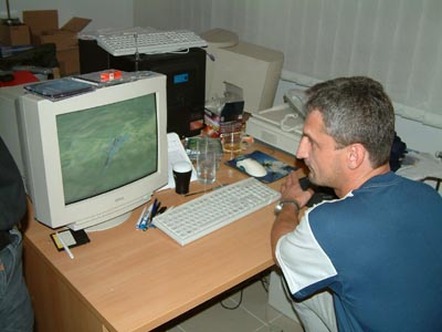 A résztvevőkön kívül a döntő nagy ellenfelei Szabó Topi Zoltán és Molnár Bagira Gábor is esténként gyüri a joysticket. Készülnek, gyakorolnak a döntőre. Nem minden olvasónk tudja, hogy október 25-26 között a Petőfi Csarnokban tartjuk légiharc bajnokságunkat. Az UbiSoft Flanker 2.5 szimulációs programja segítségével küzdenek egymás ellen a jelentkezők. A verseny végén, a döntőbe jutottak aktív MiG-29 pilótákkal mérik össze repülő tudásukat.